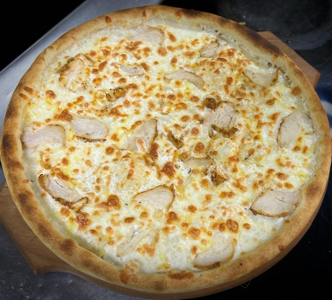 курочка халяль, томатный соус со специями, сыр моцарелла, сыр гауда